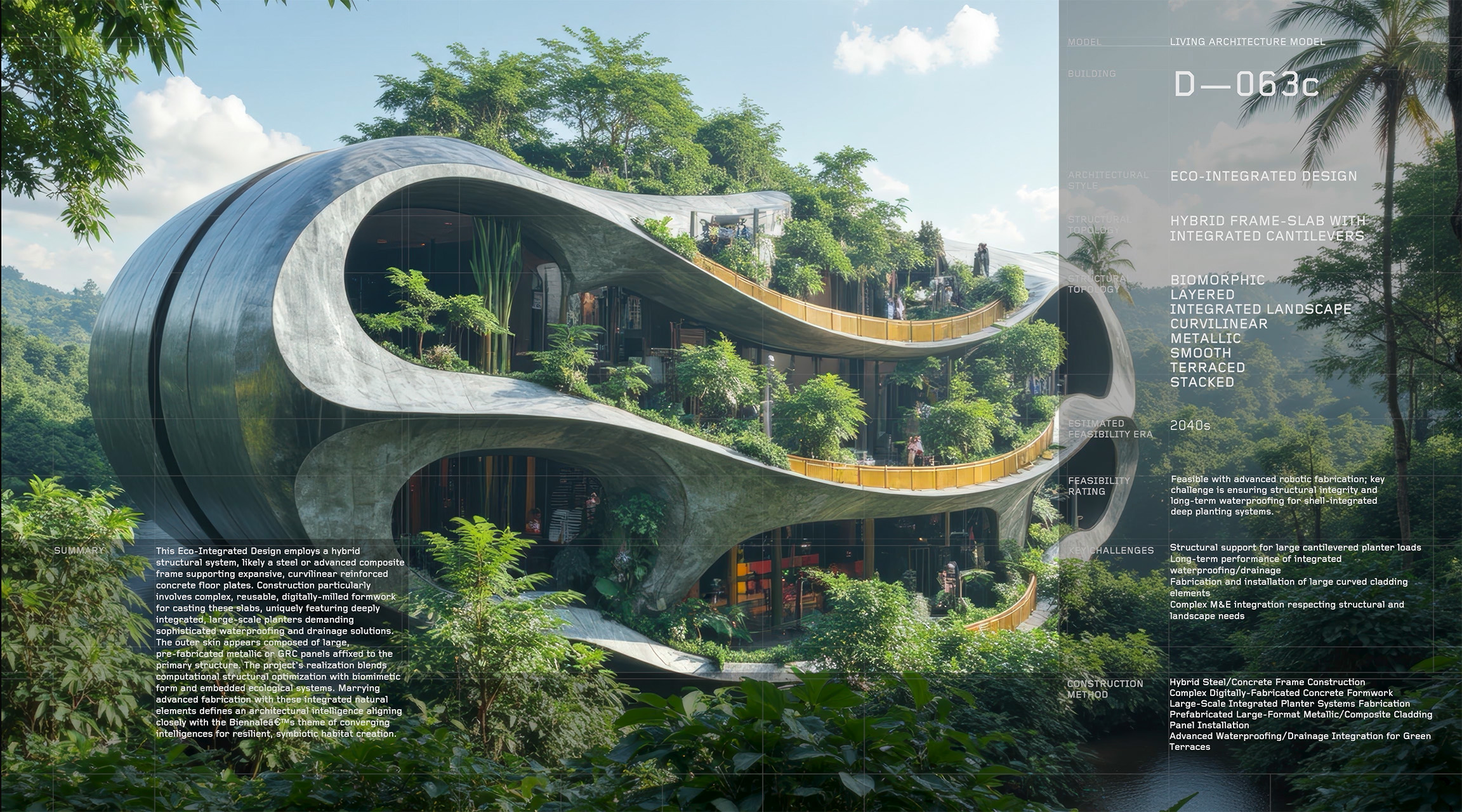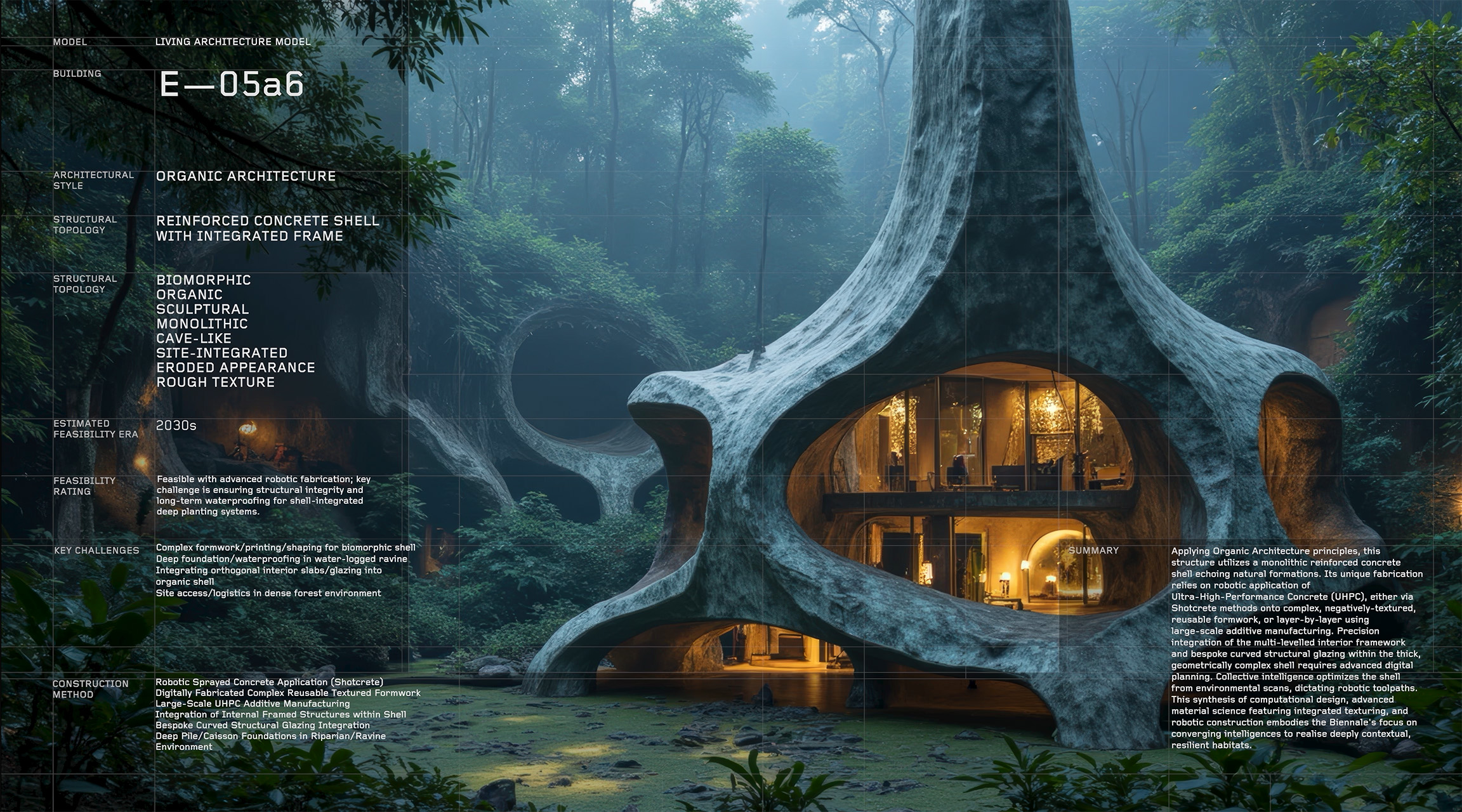 Living Architecture: Biophilia is an AI Data Sculpture that transforms more than 100 million images of Earth’s diverse flora, fauna, and fungi into immersive, hyper-realistic environmental experiences. This installation brings nature to life in a digital realm, allowing visitors to engage with the Earth’s ecosystems in new ways. The project reimagines ecocentric environmentalism by combining the intelligence of nature, humans, and AI. Accounting for these different forms of intelligence is essential in building adaptive architectures and networks that reflect the complexity of natural systems. Nature’s intelligence, with its complex patterns and processes, offers a blueprint for resilience and adaptability. Human intelligence contributes cultural, emotional, and functional understandings of space and place. AI acts as a bridge, processing vast amounts of data to create dynamic, responsive environments that evolve with their ecosystems. This dialogue between intelligences challenges conventional architectural thinking, encouraging us to design structures and networks that are not only functional but also deeply integrated with the environments they inhabit. By blending art, technology, and environmental data, Living Architecture: Biophilia demonstrates how this intersection can help us envision a future where digital innovation informs the creation of sustainable, intelligent ecosystems—both natural and built.